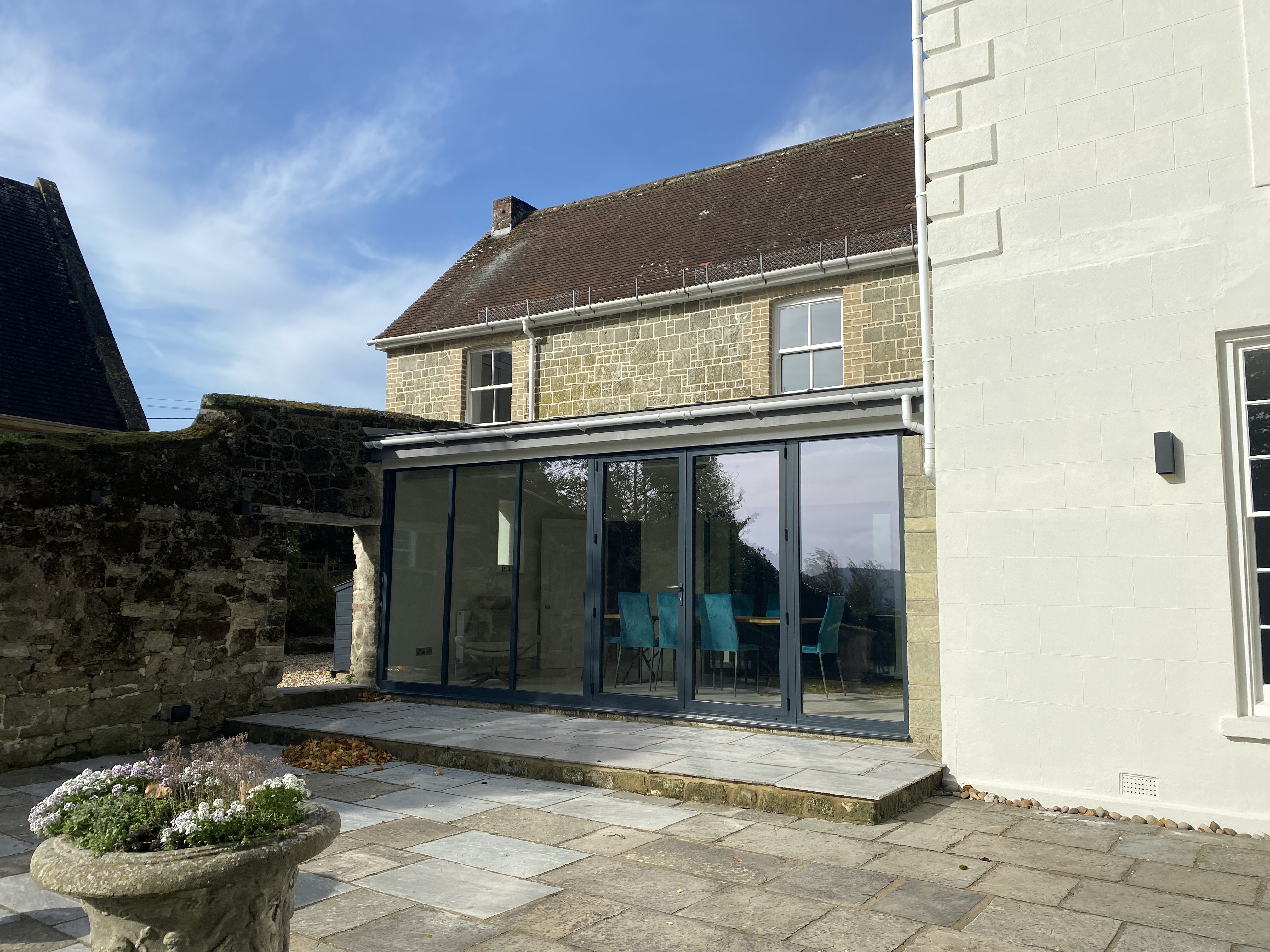Works also included remodeling of the existing conservatory to create a modern, contemporary garden room to maximise incoming natural light and south facing views and replacement of existing stable into a garage.