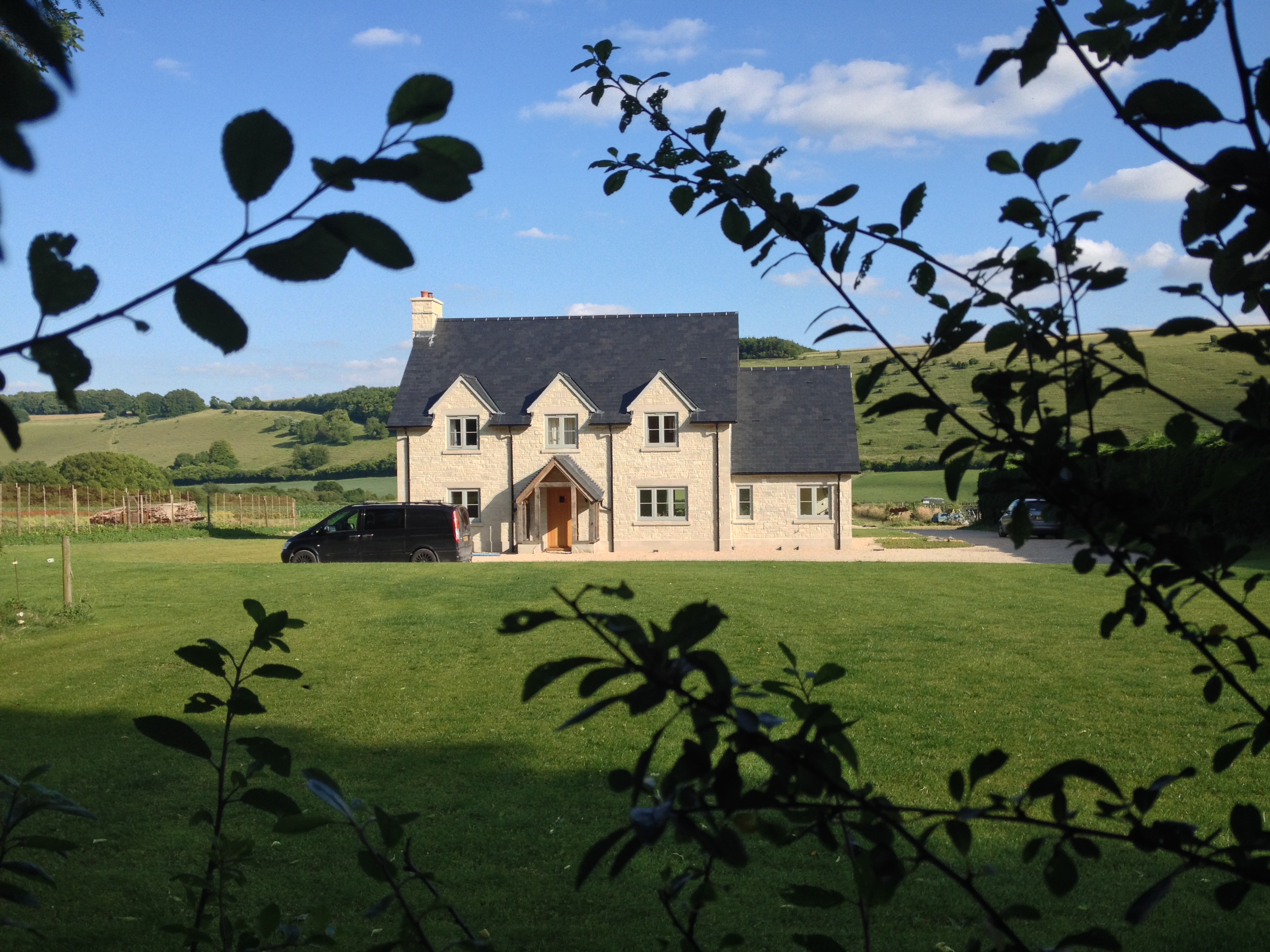 The roof is of natural slate and the walls of Chilmark stone. The porch is supported on an oak frame.