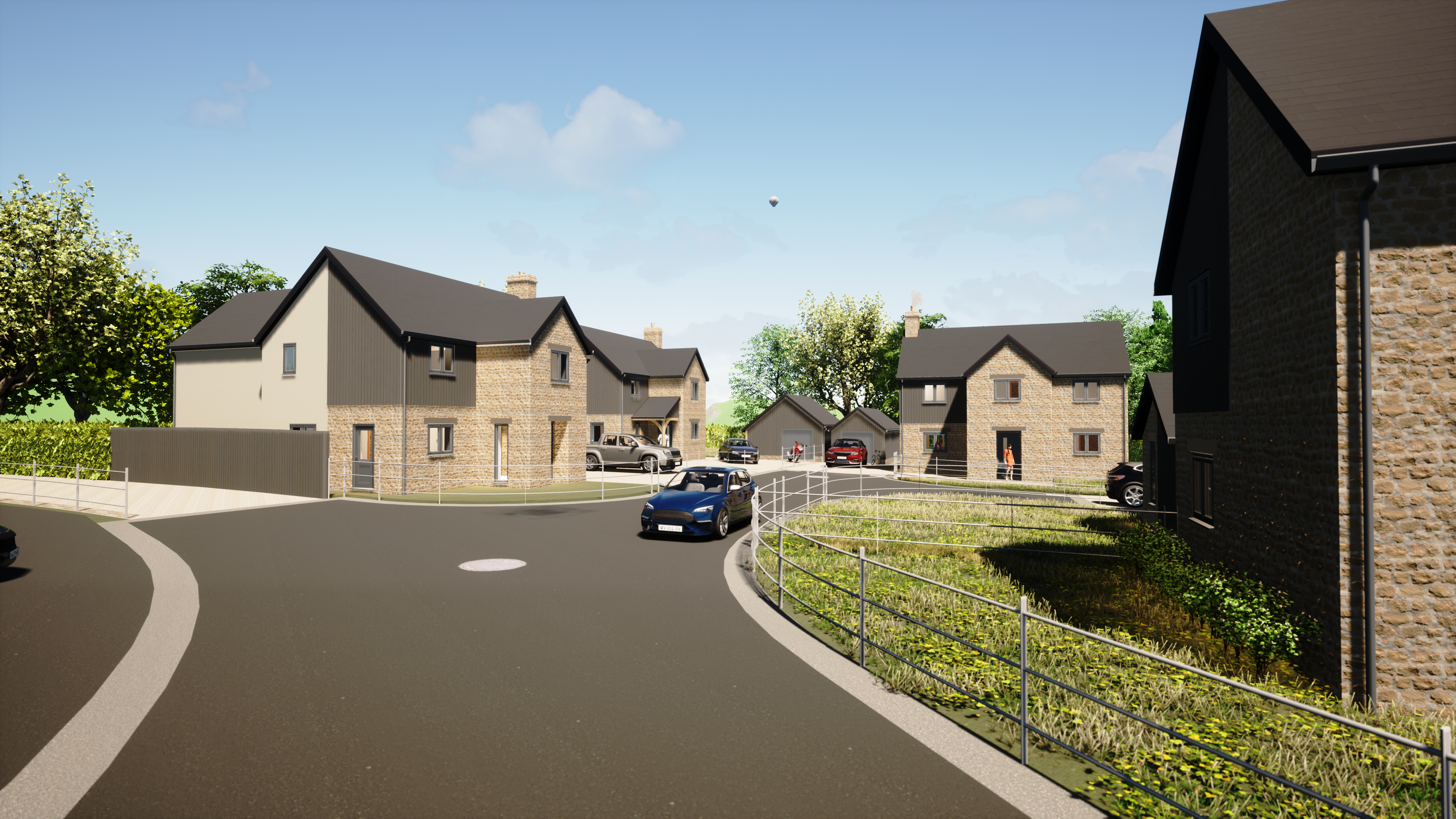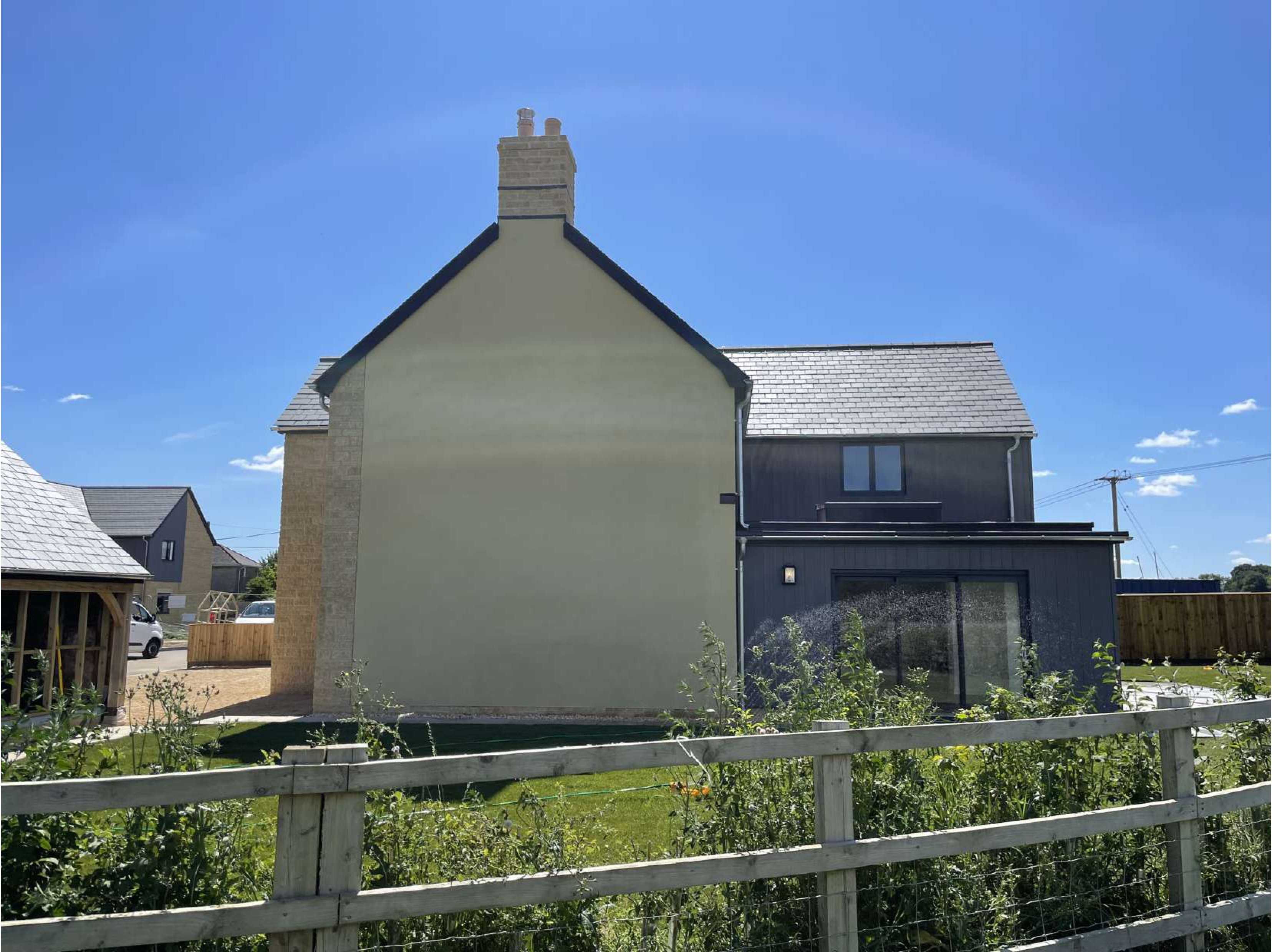 The initial proposal was to make use of a redundant farmyard to house 4no. new build dwellings. However, it was later possible to develop the site more efficiently and adding more diversity in tenure by creating a pair of semi-detached cottages, allowing for 5no. dwellings with large gardens and spacious internal layouts. The design aesthetic is constant between properties using a similar material palette, with generally traditional design with a contemporary twist in how materials are used. This ensures the development will have a sense of identity in the village and give residents an individual sense of place. During construction, one dwelling was granted further planning permission to erect a garden room improving the flow throughout the ground floor.